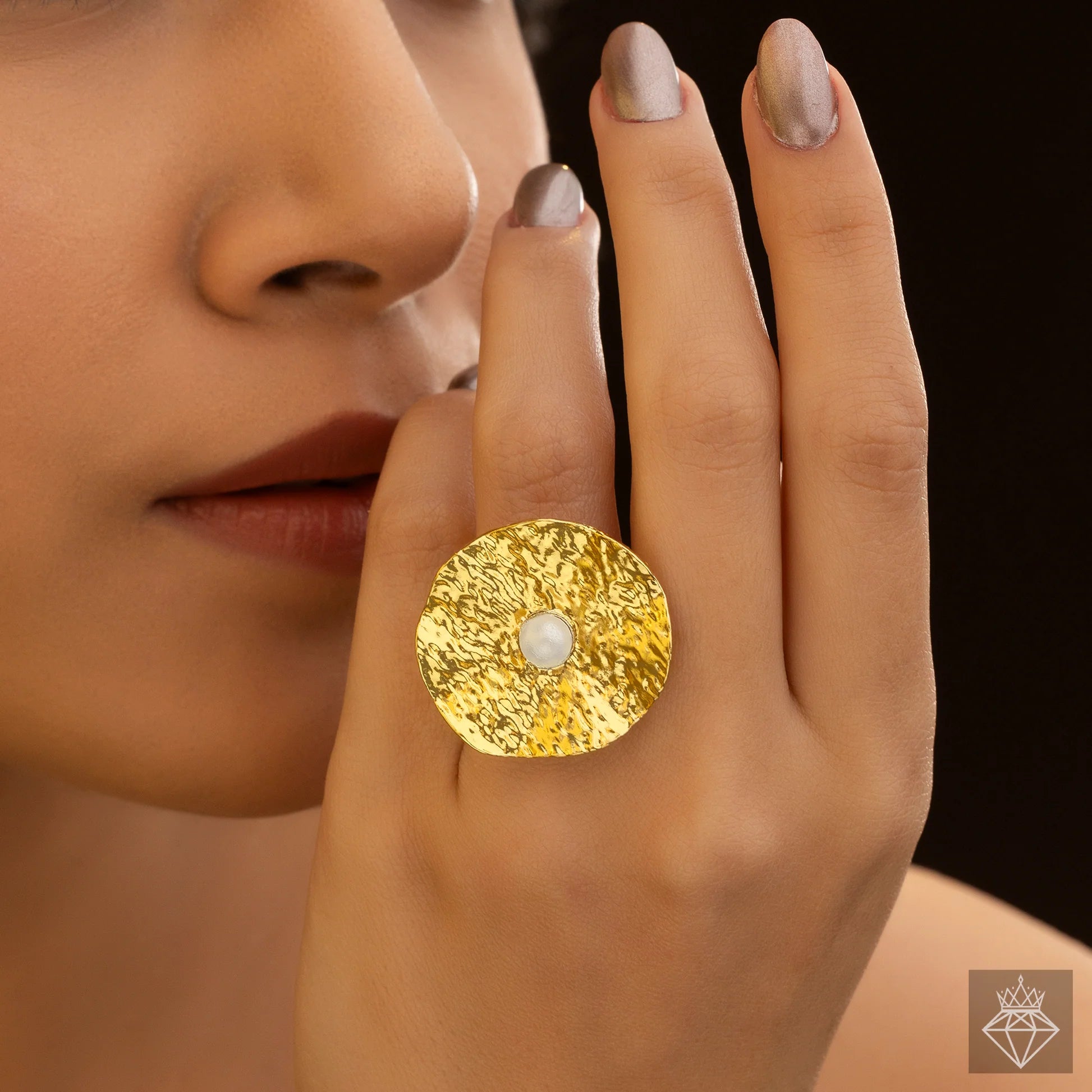 AUROZI Anti-Tarnish Hammered Pearl Ring (Adjustable Size) Artisan Texture. Timeless Elegance. Everyday Grace.