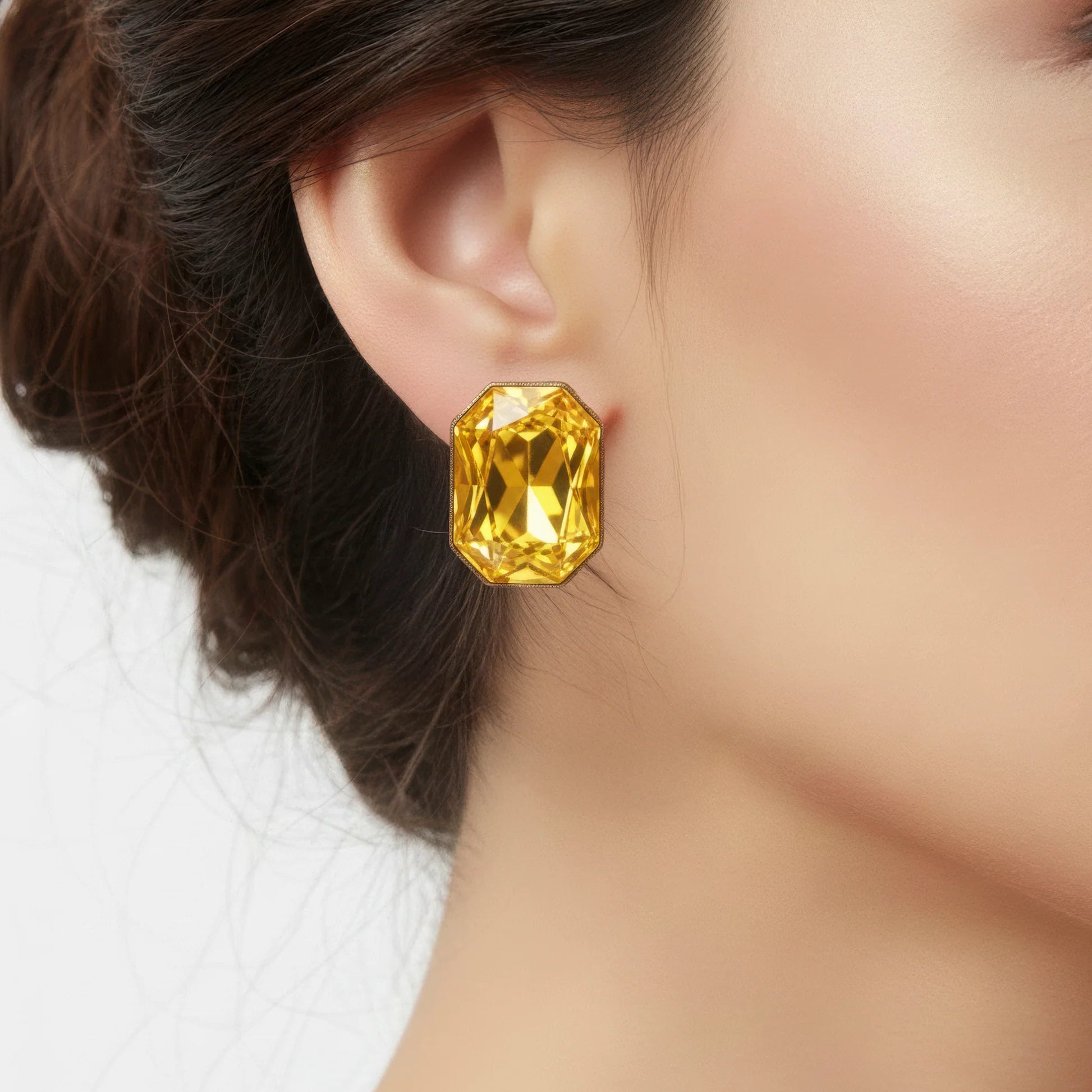 The AUROZI Rectangle & Triangle Pendant Necklace with Earrings is a bold fusion of geometry and vibrant color. Designed with a sleek rectangle and sharp triangle, the pendant pairs vivid yellow topaz for warmth and vitality with a deep blue sapphire crystal for elegance and depth. This striking contrast of tones creates a harmonious balance that shines in any setting. Suspended from a polished chain, the pendant glimmers beautifully in the light, while the matching earrings complete the sophisticated look. A timeless yet contemporary statement piece, it’s perfect for both casual and formal occasions.