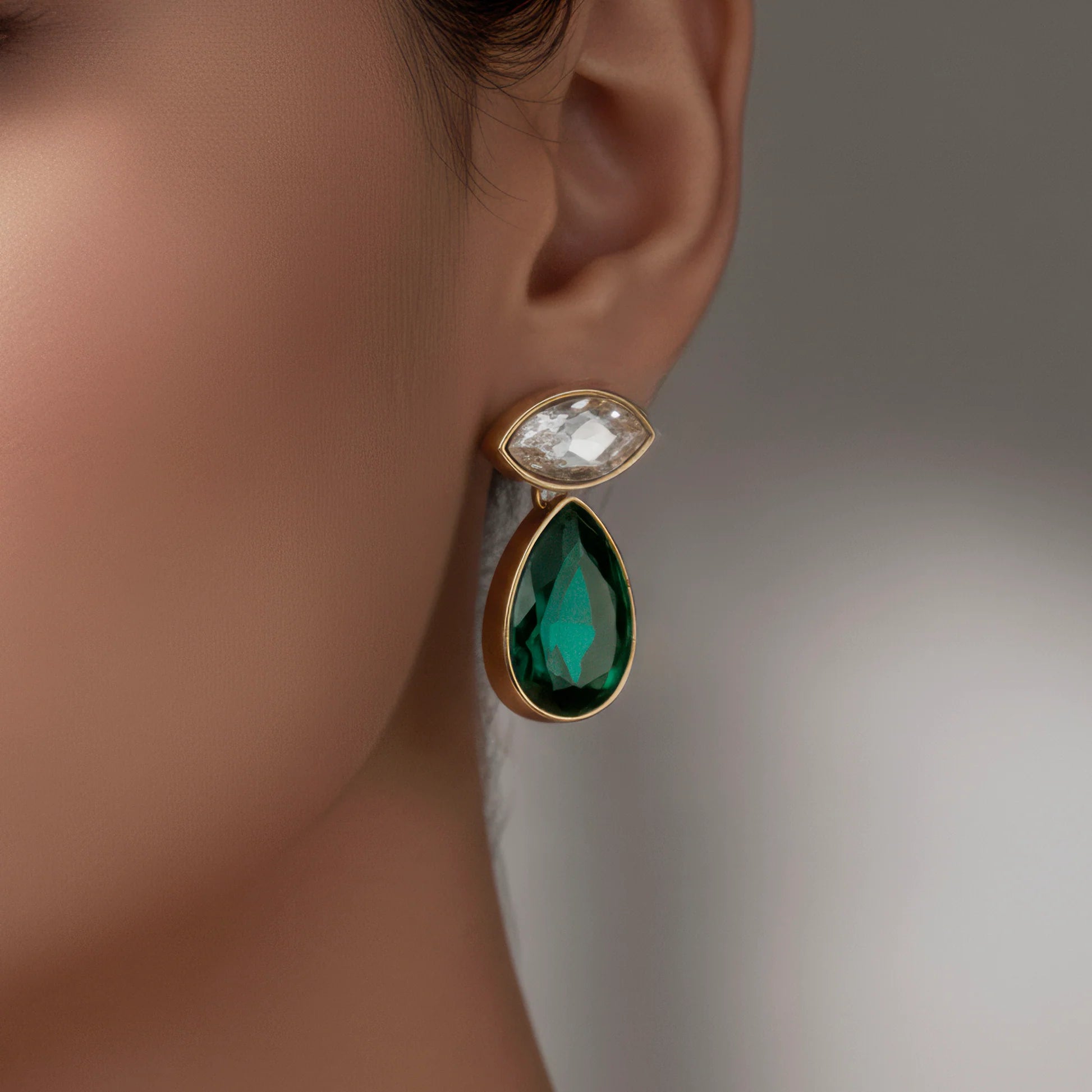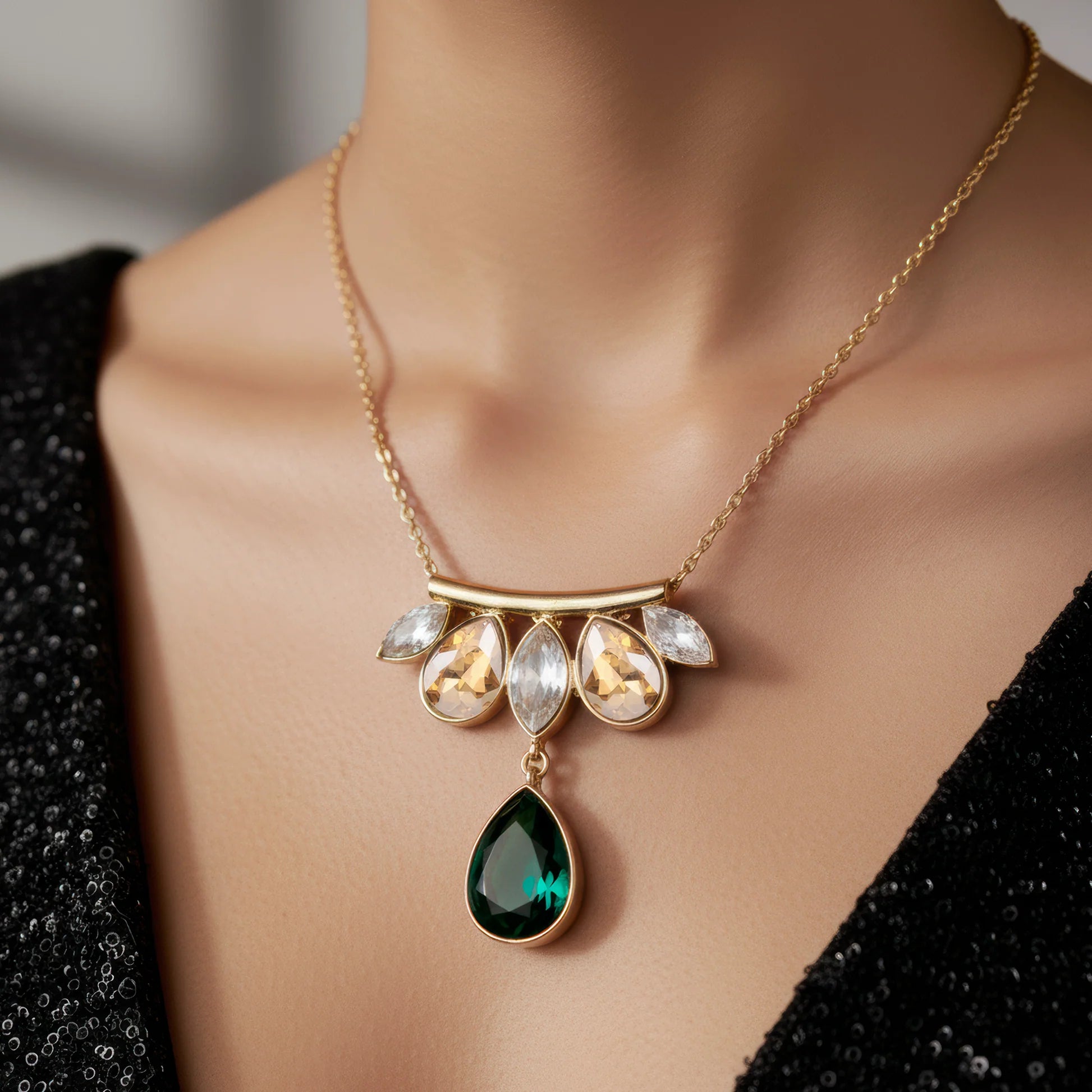 The AUROZI Marquise and Drop Crystals Pendant Necklace Set with Earrings is a radiant expression of timeless elegance. Featuring a pendant necklace adorned with sparkling marquise and drop-shaped crystals, it creates a graceful play of light and movement. The matching earrings frame the face with dazzling brilliance, while the necklace highlights the neckline with refined sophistication. Lightweight and versatile, this set transitions effortlessly from weddings and parties to festive occasions, adding a touch of glamour to both classic and modern attire.