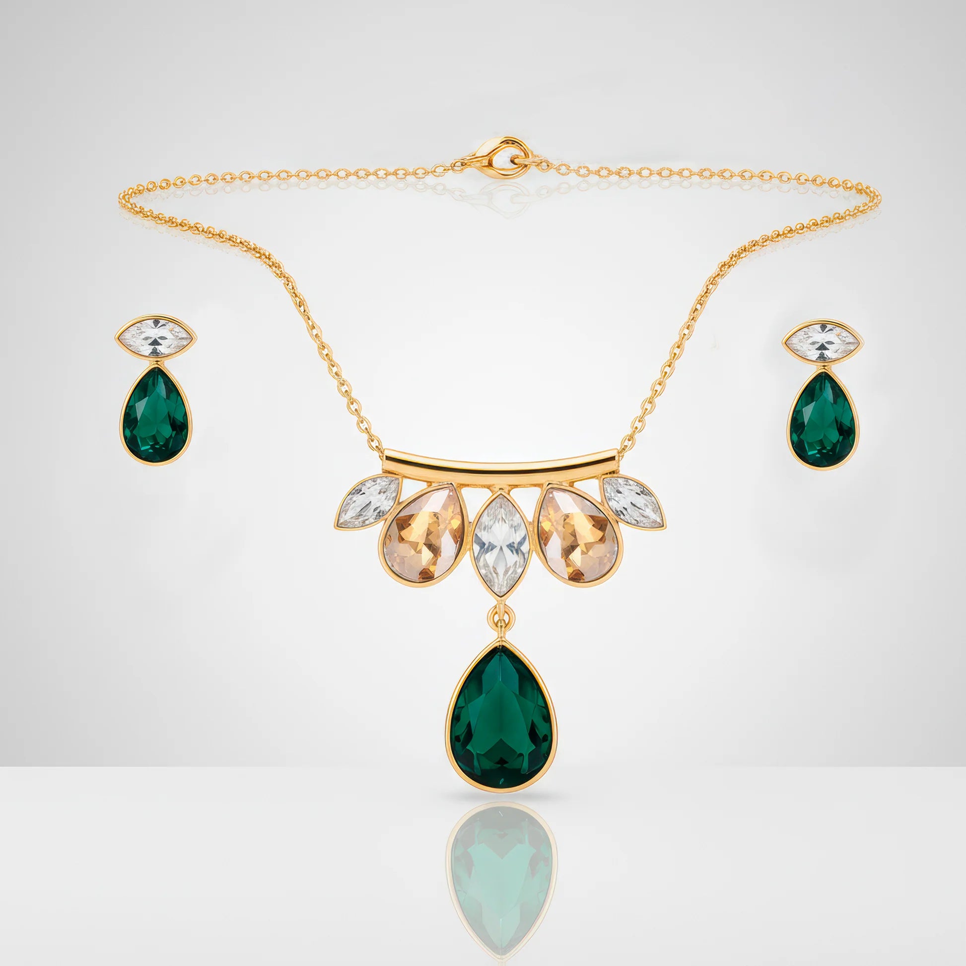 AUROZI Anti-Tarnish Marquise and Drop Crystals Pendant Necklace Set with Earrings