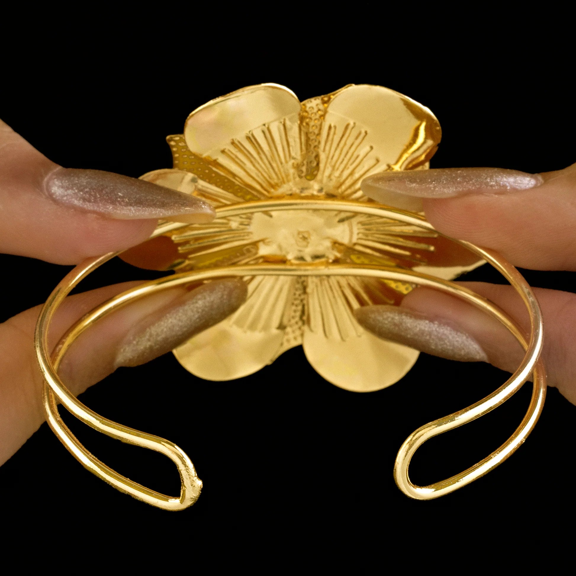 The floral design is lightweight yet durable, making it perfect for daily wear or dressing up special moments. Whether styled solo or stacked with other favorites, this bracelet adds refined sparkle and a touch of warmth to any look.