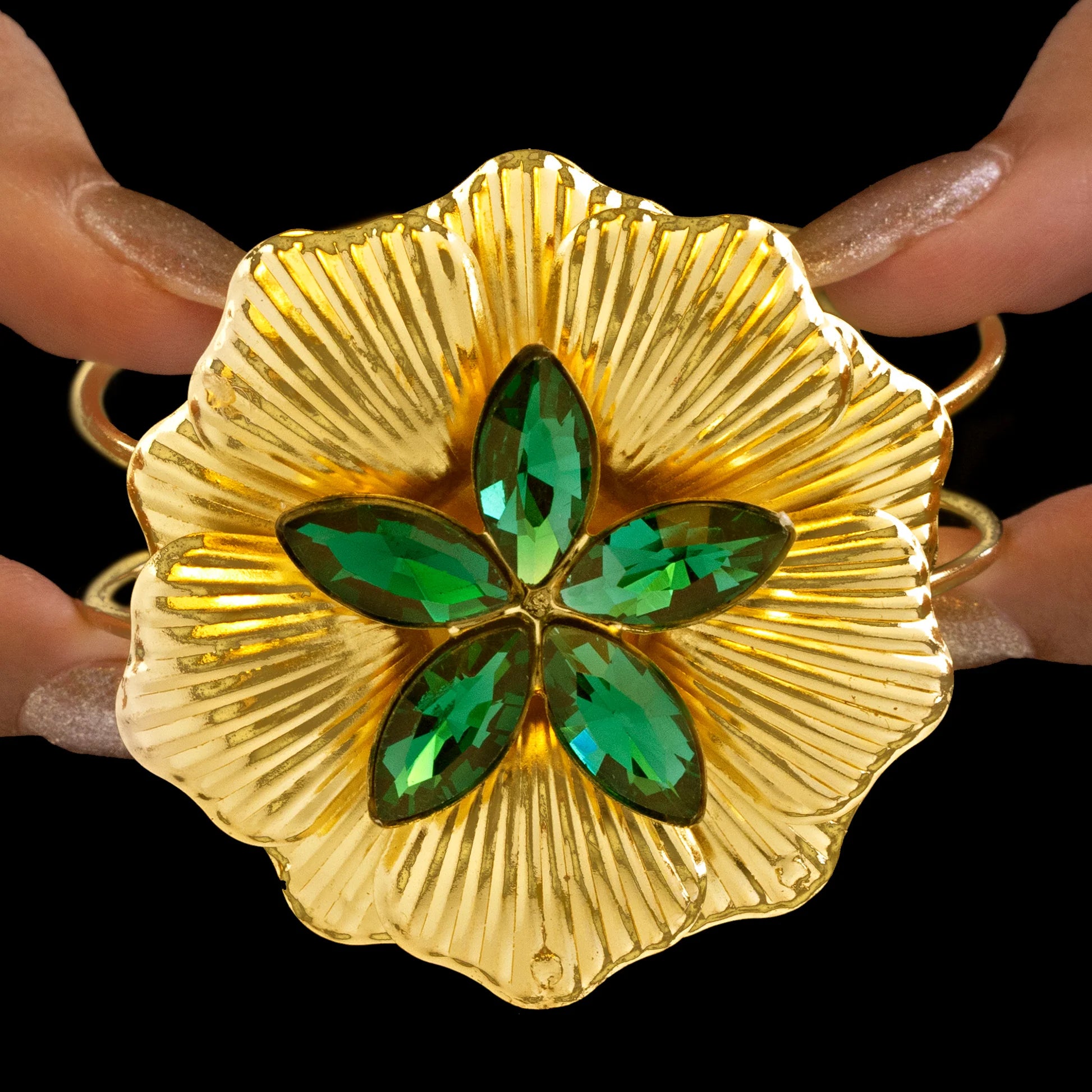 AUROZI Anti-Tarnish Emerald Flower Super Saver Pack Of Necklace Set With Ring, Bracelet (Adjustable Size)
