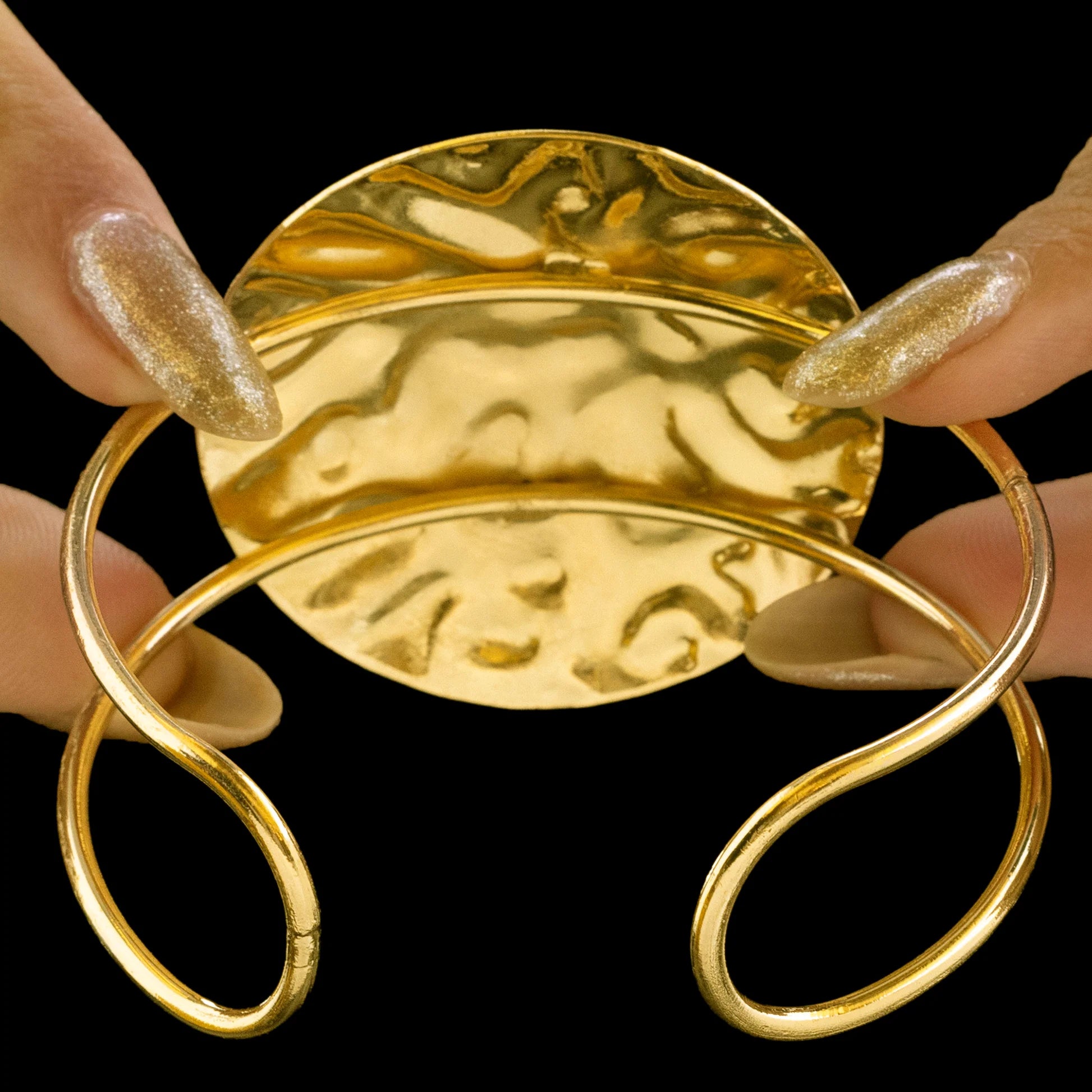 AUROZI Hammered Coin Cuff Bracelet – Textured Elegance, Timeless Appeal