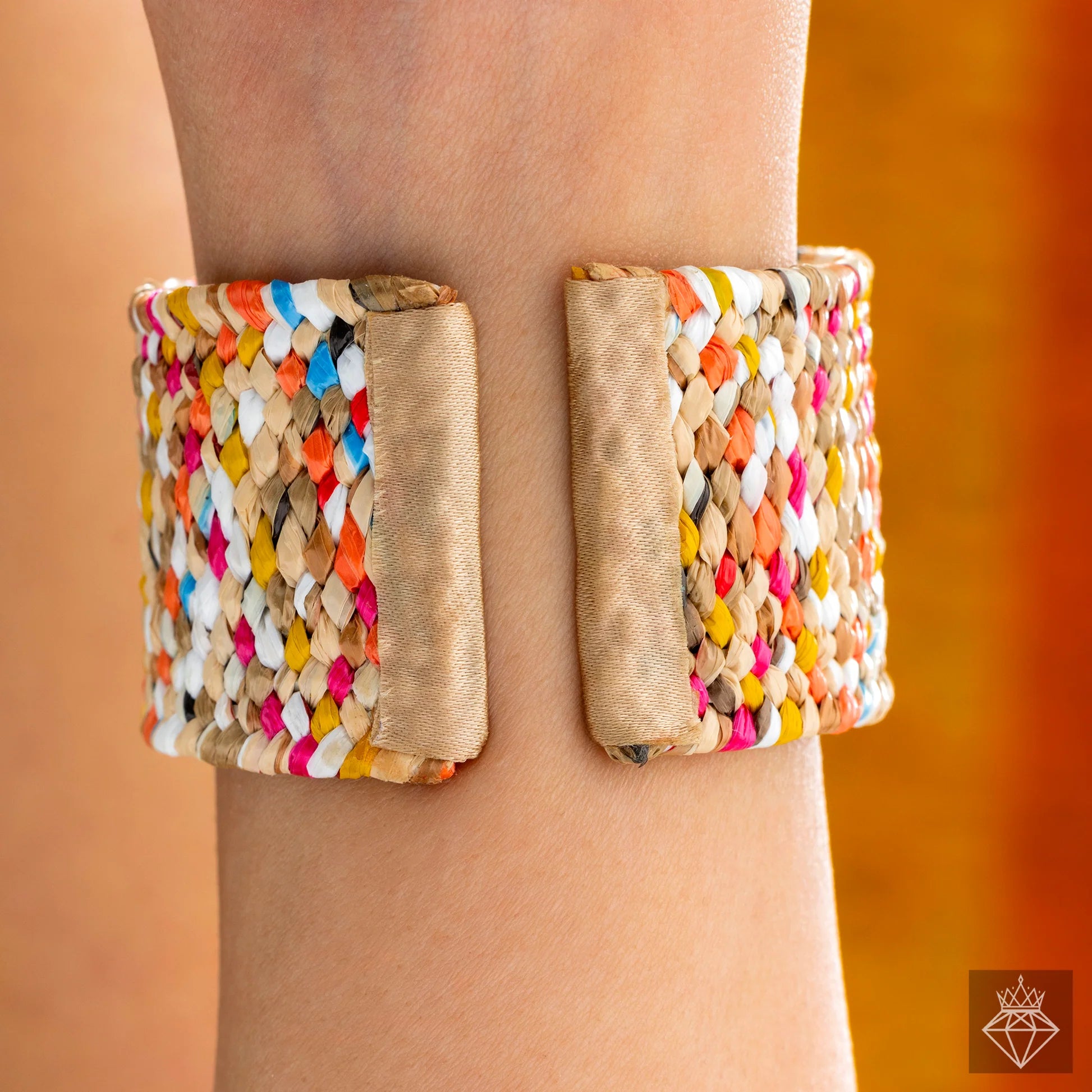 🎨 AUROZI Multi-Color Woven Reffia Cuff – Bold Colors, Artisan Charm