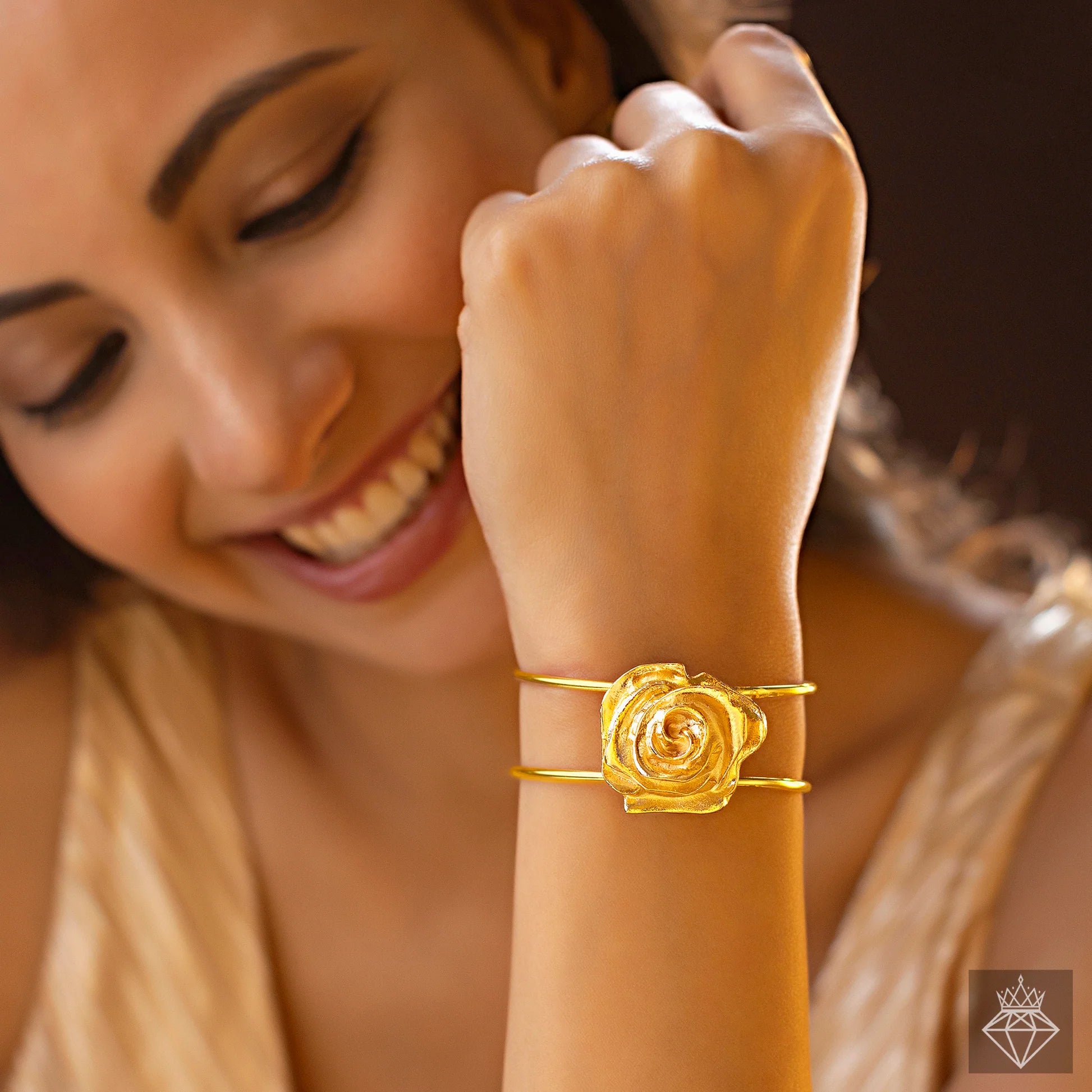 Embrace romance and refinement with the AUROZI Golden Rose Bracelet, featuring a beautifully sculpted rose design that captures the essence of love and timeless beauty. Expertly crafted, each intricate petal showcases exceptional detail, making this piece a true work of art.