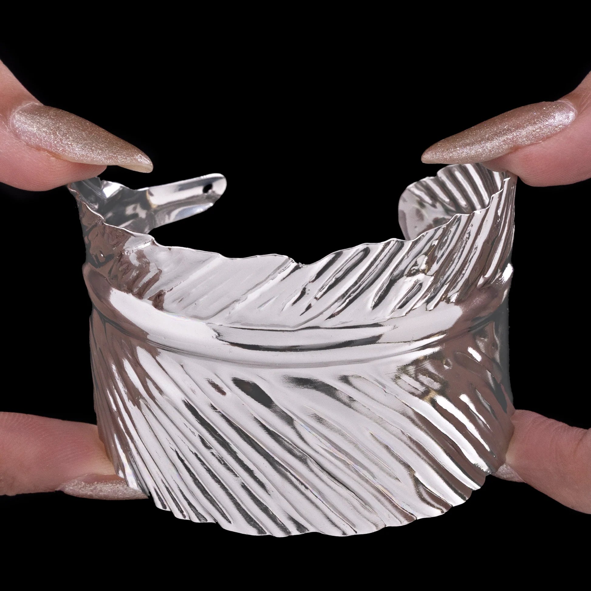 AUROZI Anti-Tarnish Silver Leaf Bangle Bracelet (Adjustable Size)